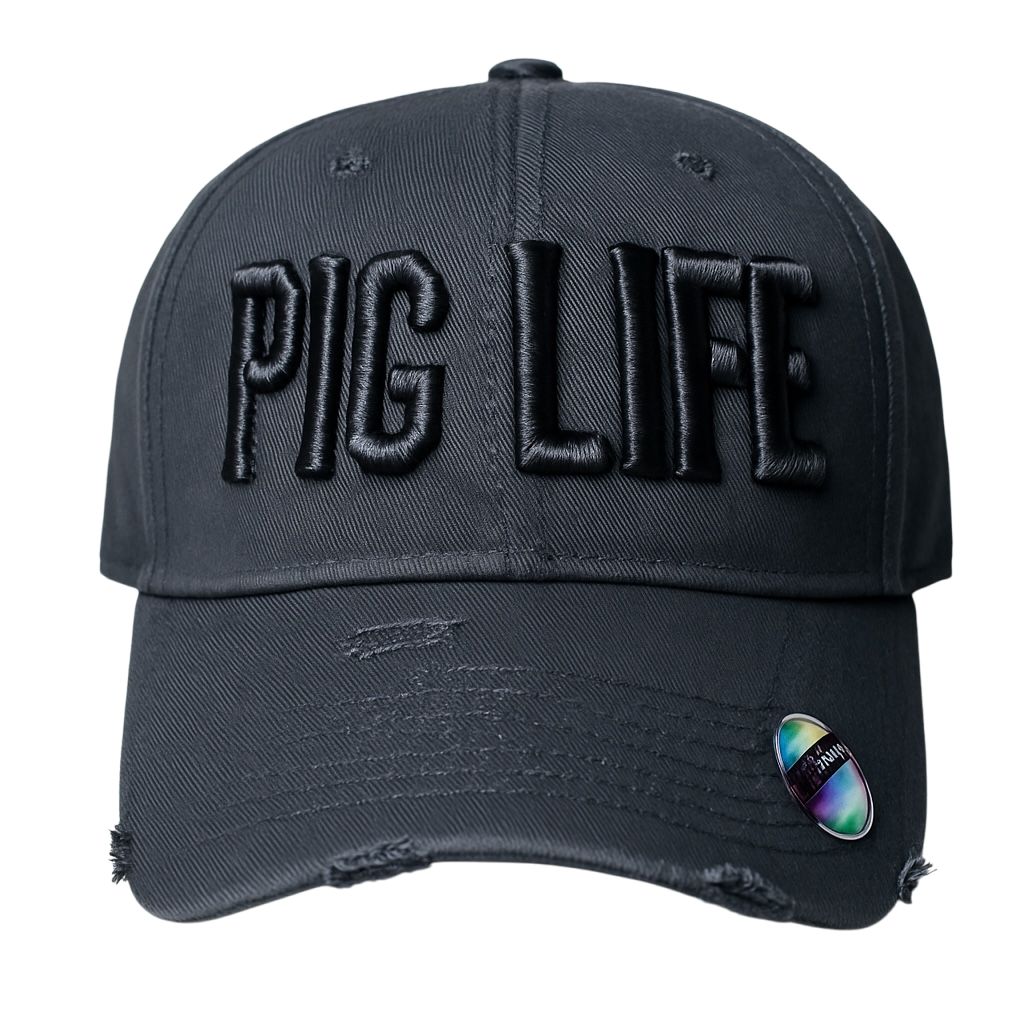 Pig Life Embroidered Distressed "Blackout" Hat - Block