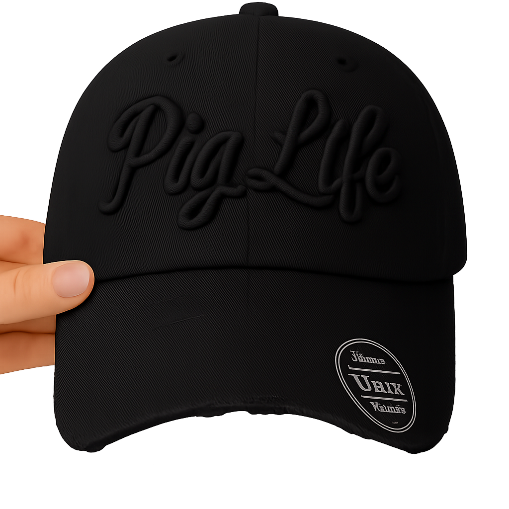 Pig Life Embroidered Distressed Cap - Black Out (script)
