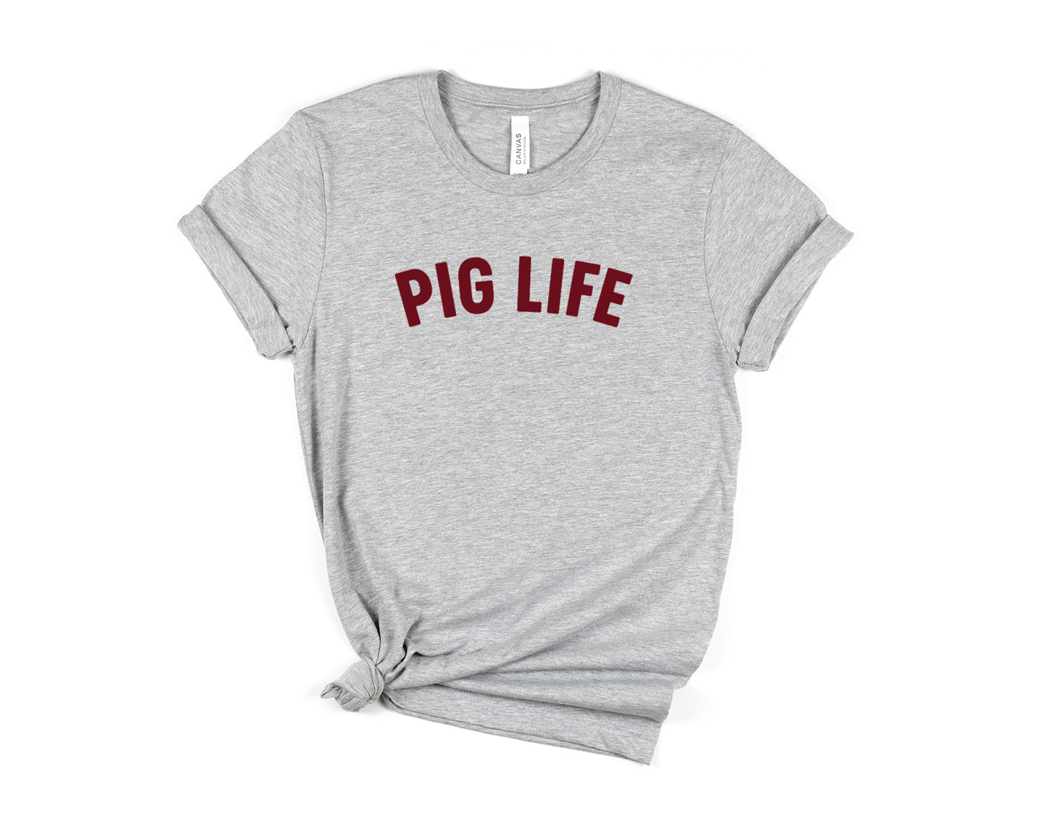 • Color: Heather gray with Cardinal Red “PIG LIFE” print